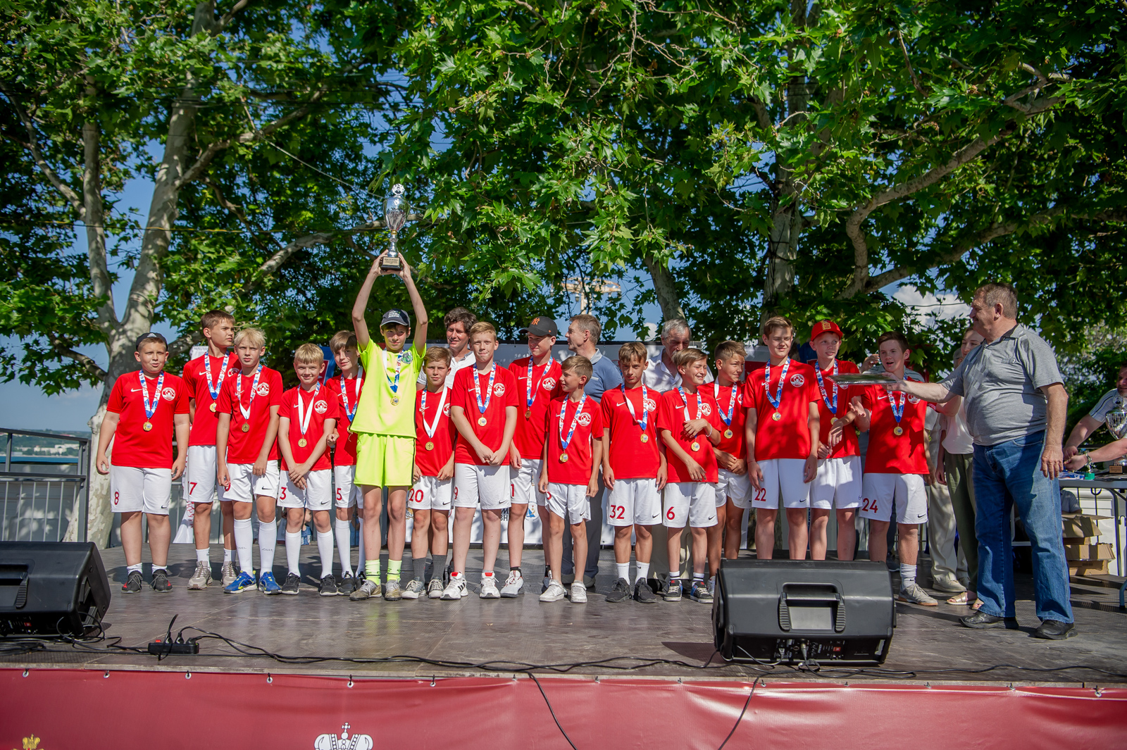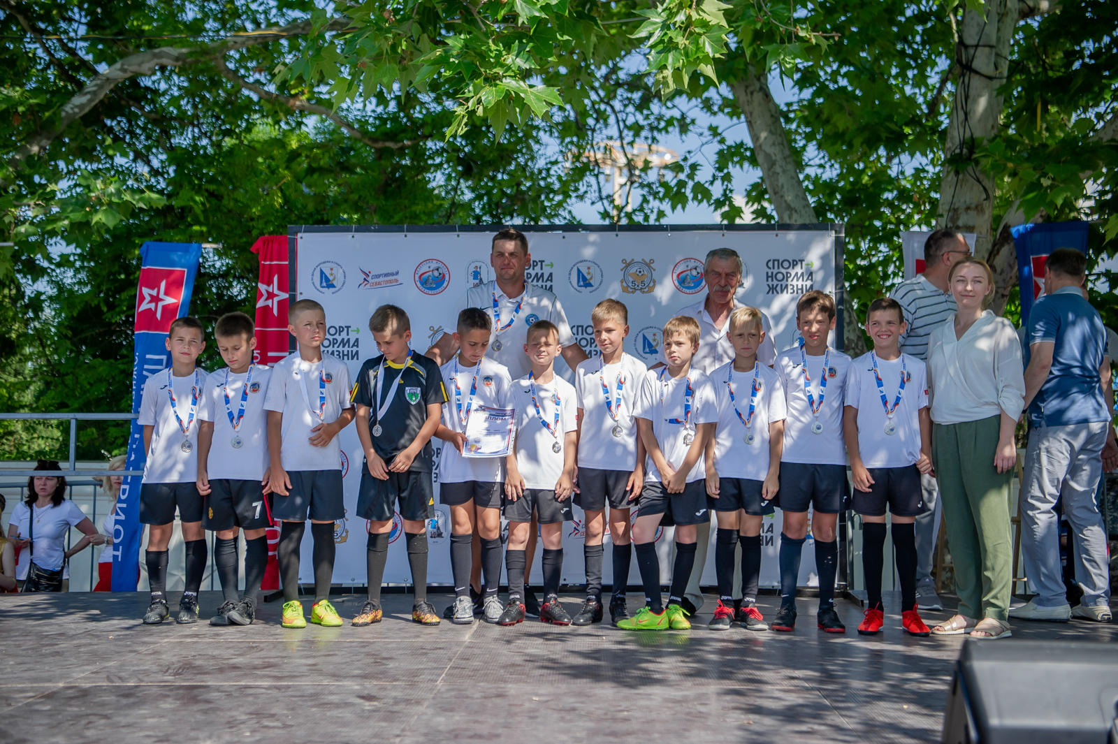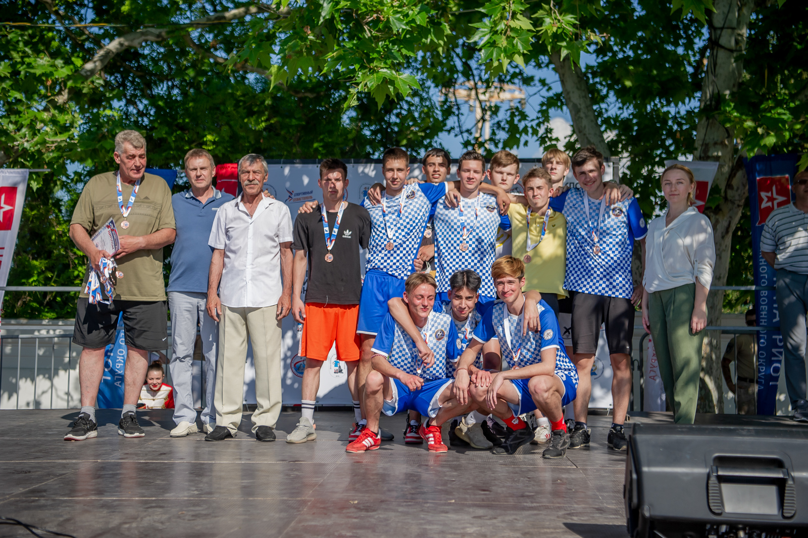 Торжественная церемония награждения прошла в самом сердце нашего города – на площади Павла Степановича Нахимова и приурочена к празднованию 239-летия со дня основания Севастополя. Выбор места оказался весьма символичен. О духе патриотизма, традициях и особом отношении севастопольцев к своей истории известно далеко за пределами нашего великого города. Именно здесь находится мемориал героической обороны Севастополя 1941-1942 гг., где по сложившейся многолетней традиции чествуют главную городскую команду после побед в чемпионатах, а юные футболисты получают напутствие в преддверии нового сезона.