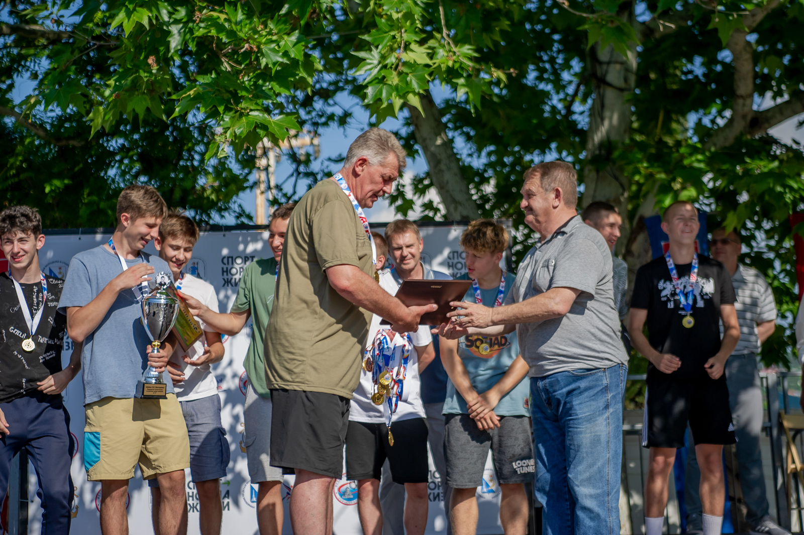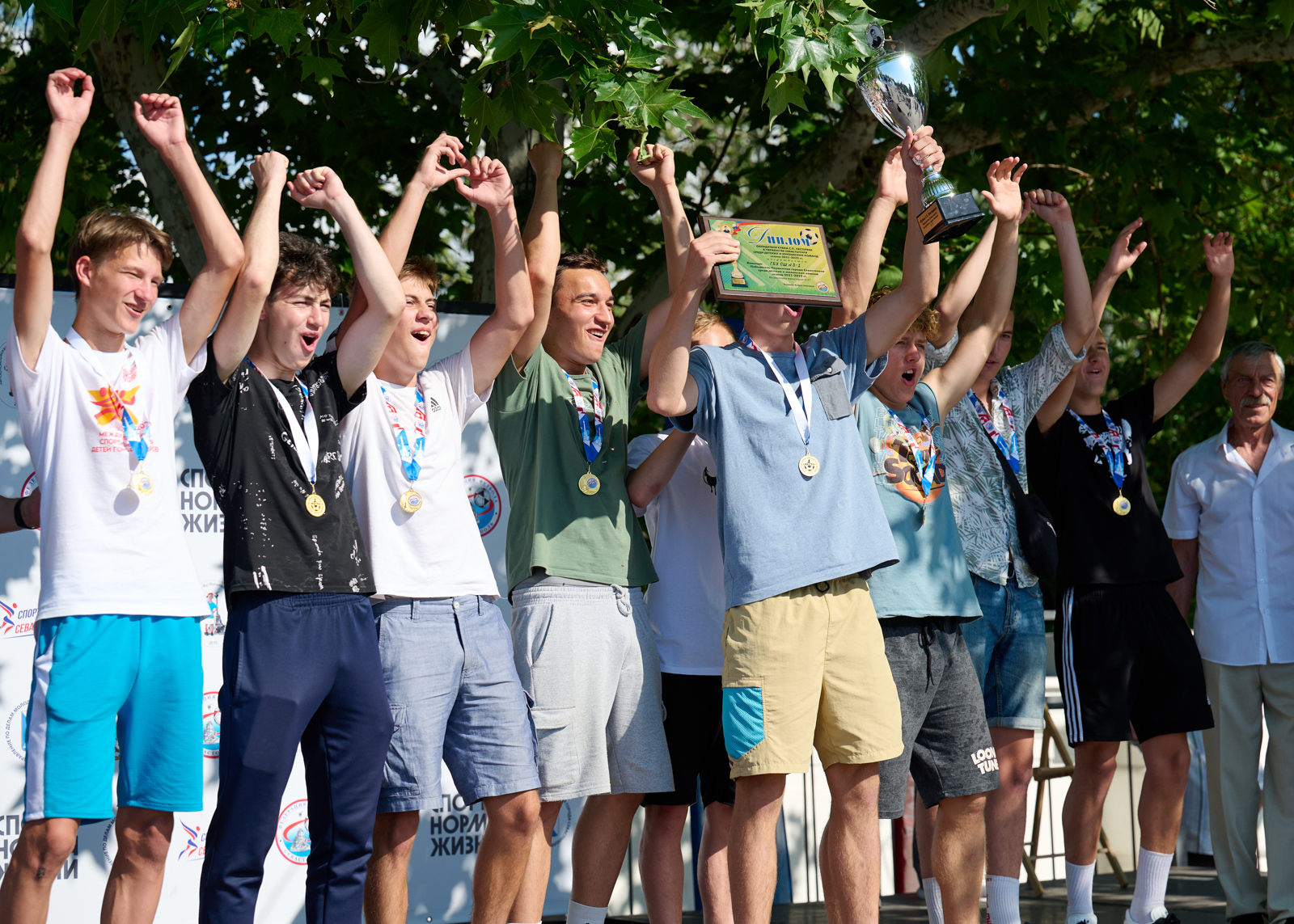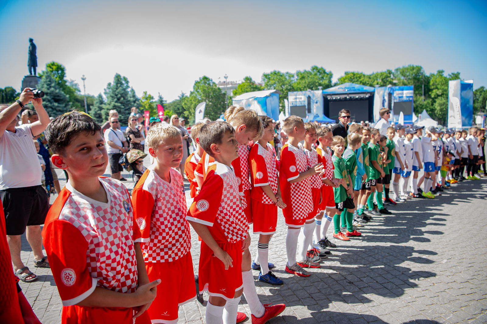 Торжественная церемония награждения прошла в самом сердце нашего города – на площади Павла Степановича Нахимова и приурочена к празднованию 239-летия со дня основания Севастополя. Выбор места оказался весьма символичен. О духе патриотизма, традициях и особом отношении севастопольцев к своей истории известно далеко за пределами нашего великого города. Именно здесь находится мемориал героической обороны Севастополя 1941-1942 гг., где по сложившейся многолетней традиции чествуют главную городскую команду после побед в чемпионатах, а юные футболисты получают напутствие в преддверии нового сезона.