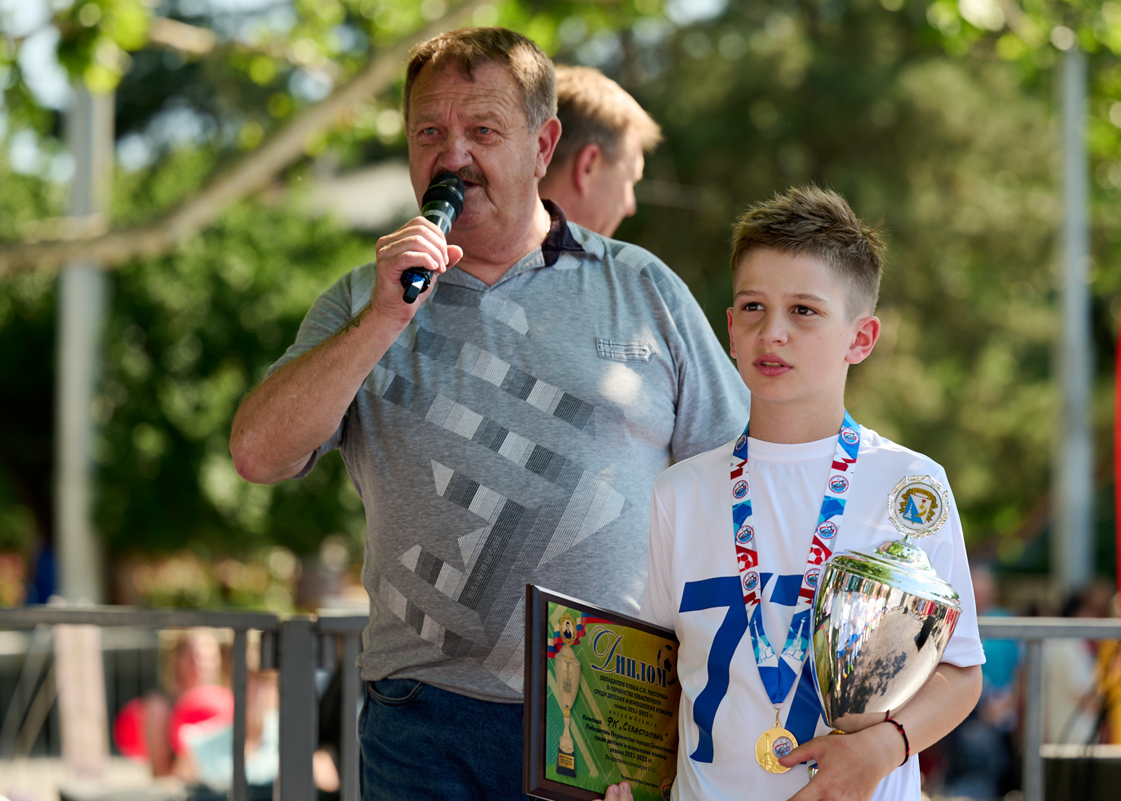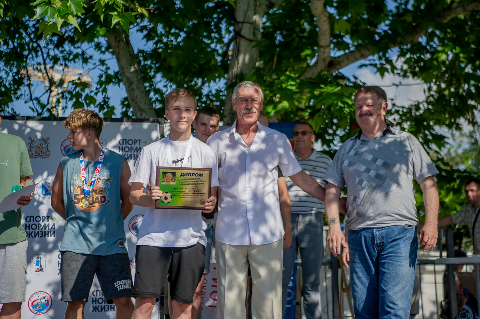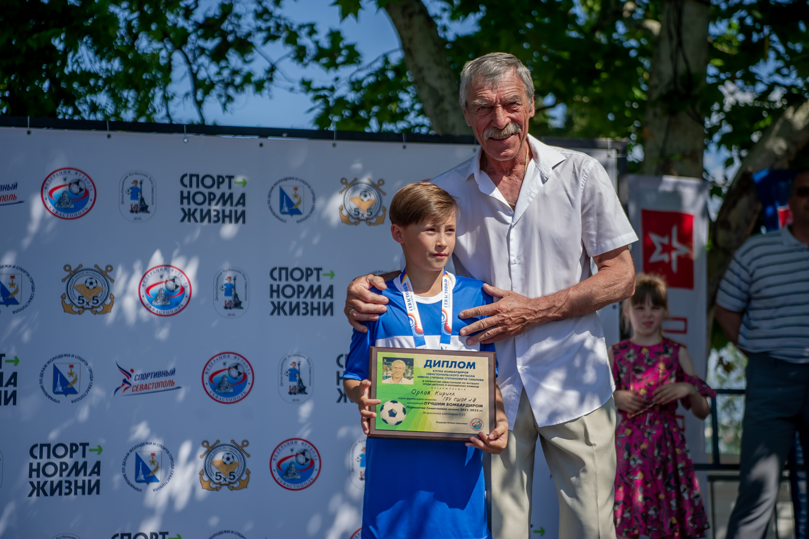 Победителей и призеров первенства награждали заместитель начальника Управления по делам молодежи и спорта города Севастополя Мария Бляхер, председатель Региональной федерации футбола Севастополя (РФФС) Александр Красильников, исполнительный директор РФФС и президент Ассоциации мини-футбола Севастополя Юрий Строчков, президент Детско-юношеской футбольной лиги Севастополя Евгений Репенков, председатель комитета по проведению соревнований РФФС Алексей Челышев и ветеран севастопольского футбола Степан Павлов. Отметим, что с 2022 года по инициативе Евгения Репенкова учреждена особая награда имени Степана Степановича Павлова – рекордсмена по общему числу забитых голов за севастопольские команды мастеров (108 мячей в 253 матчах за «Атлантику» и «Чайку») и рекордсмена по числу забитых голов в одном сезоне (прим.: в сезоне 1988 года, выступая за «Чайку», Степан Степанович отправил в ворота соперников 36 мячей в 47 матчах). Отныне эта награда будет вручаться лучшим бомбардирам регулярных соревнований, проводимых под эгидой Региональной федерации футбола Севастополя.