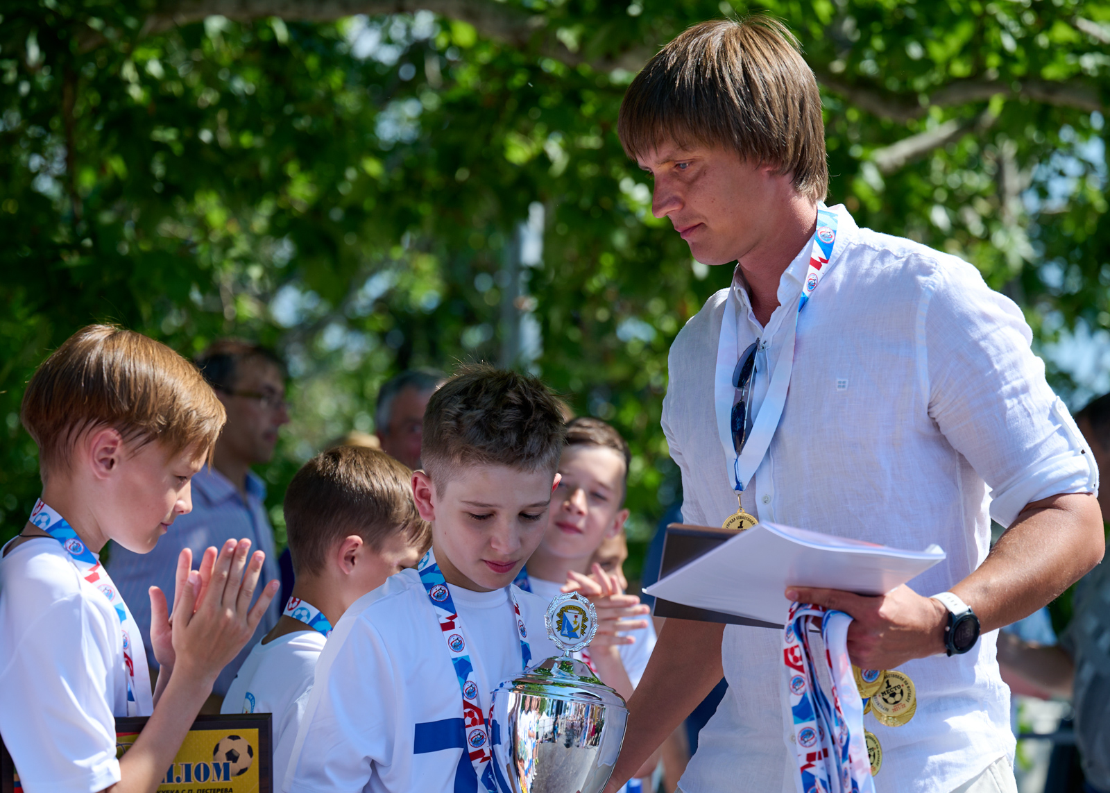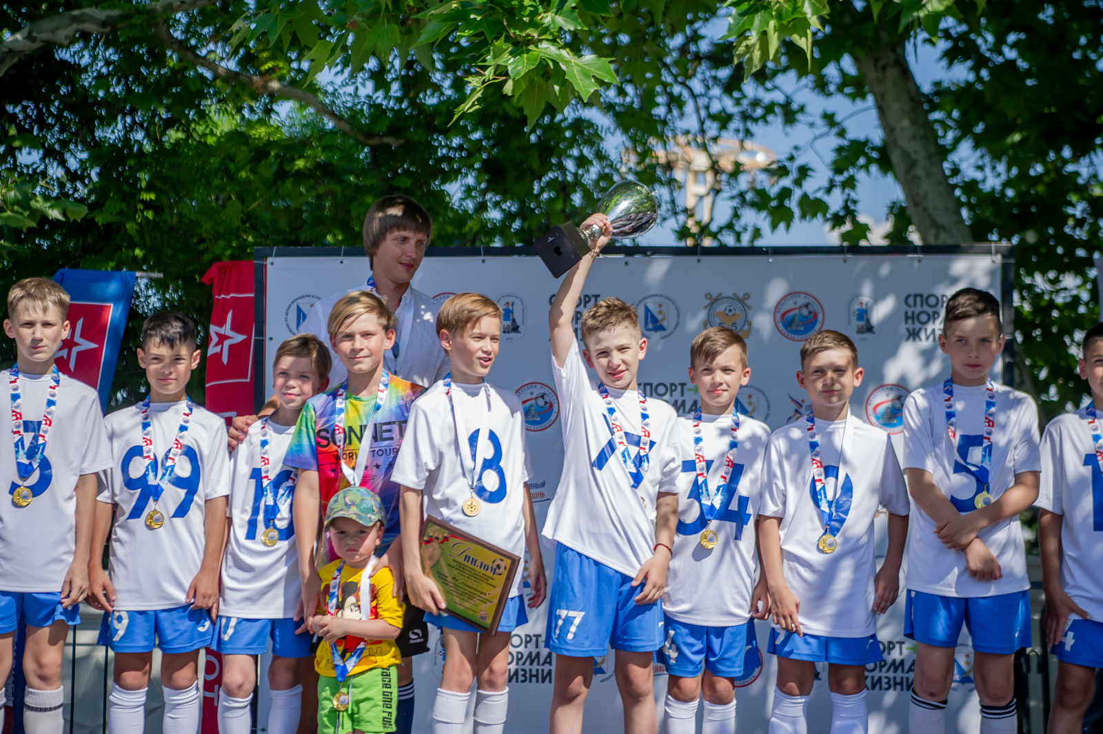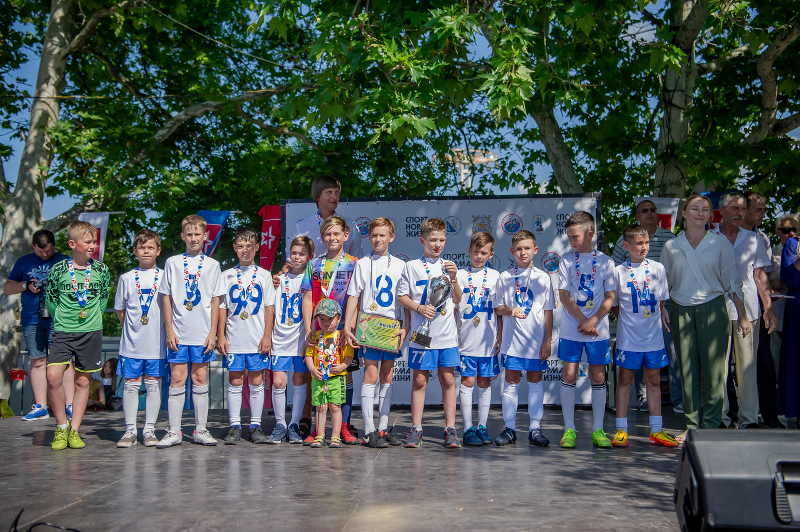 Заслуженные награды получили все лауреаты сезона: победители и призеры соревнований во всех возрастных категориях, лучшие тренеры и игроки в номинациях. За исключением ДЮФК «Севастополь» – победителя Первенства среди команд мальчиков 2010 г.р. В эти дни команда Александра Гуйганова принимает участие в финальном турнире международного фестиваля детских футбольных команд «Локобол». Кроме того, поприветствовать юных севастопольских футболистов перед сценой собрались не только родители, друзья и знакомые, но и горожане – никто не остался безразличным!