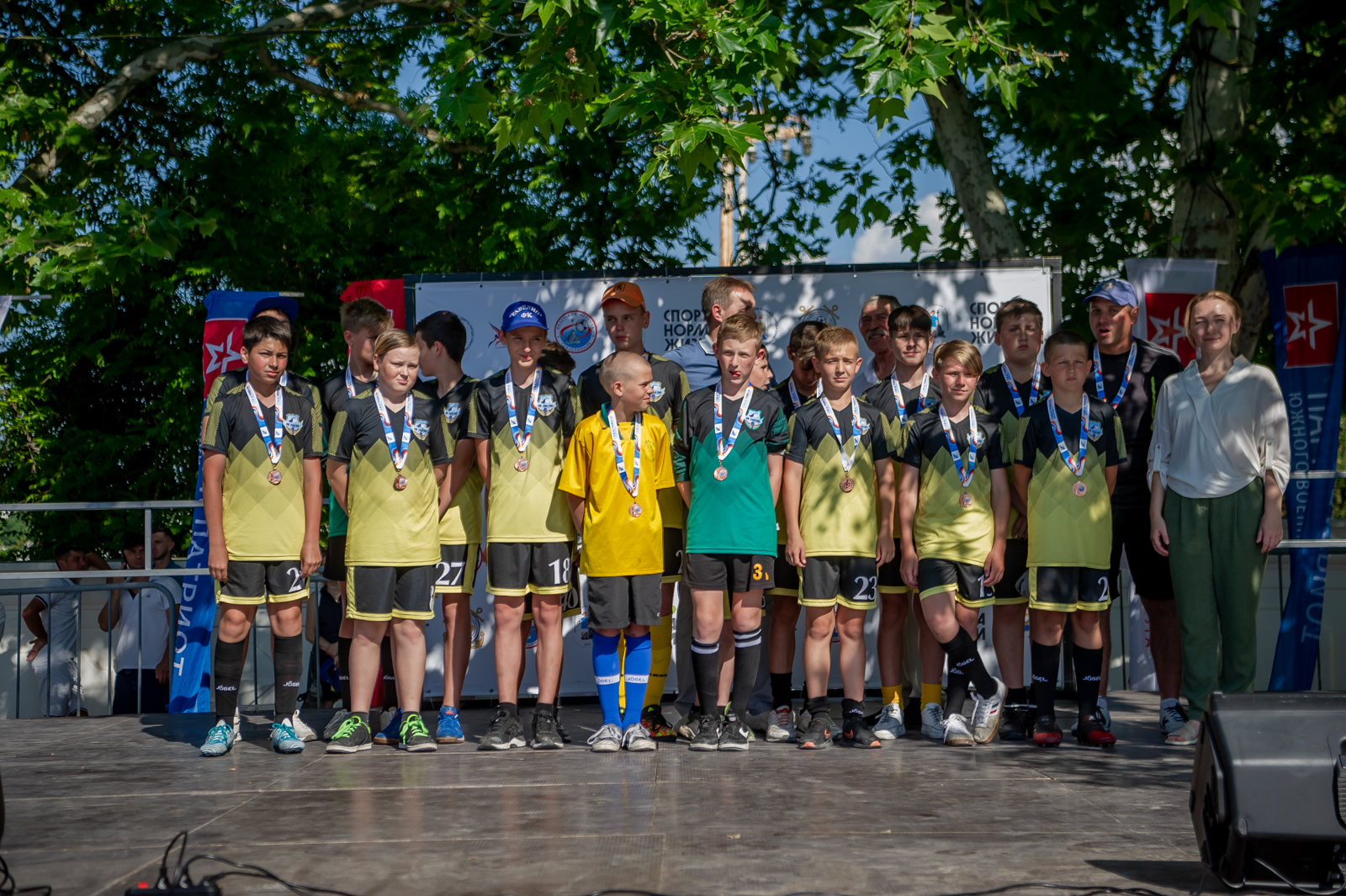 Церемония награждения периодически прерывалась на выступления танцевальных и вокальных коллективов, а на самой локации жители и гости нашего города могли поучаствовать в различных активностях и конкурсах, организованных Парком «Патриот» Южного военного округа Минобороны России и футбольной школой «Спартак Юниор». На этом сезон 2021/22 завершен. Начало нового запланировано на сентябрь и предварительно, в связи с переходом на систему «весна-осень», завершится в конце года. Организаторы обещают и другие интересные нововведения, которые позволят существенно повысить качество и интерес к соревнованиям. Но об этом мы расскажем в следующий раз! Полный фотоальбом в нашей футбольной группе ВК — https://vk.com/album-34759130_284749008